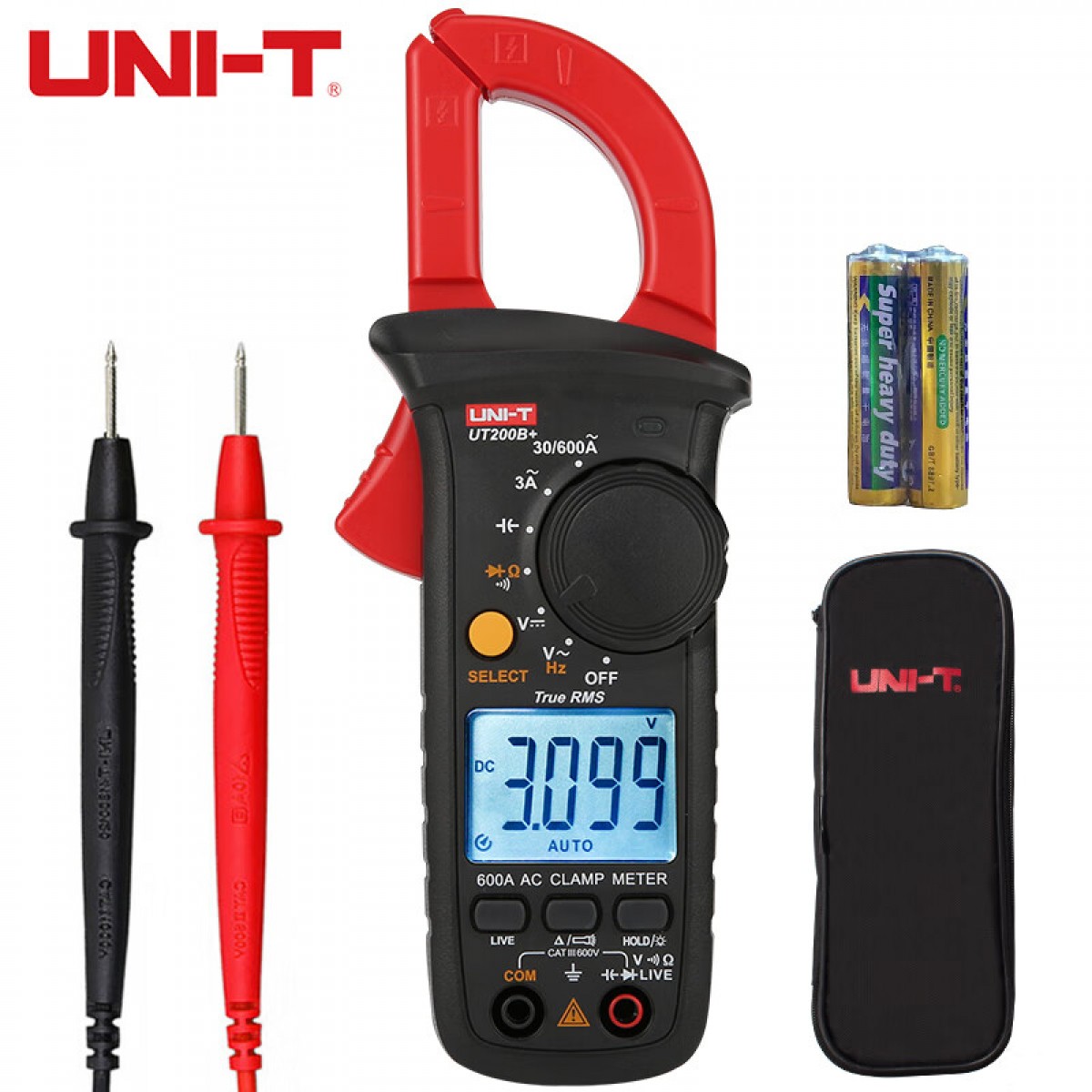 优利德(UNI-T)UT200B+钳形表 数字万用表高精度真有效值自动电工电流表交流600A 单位:个