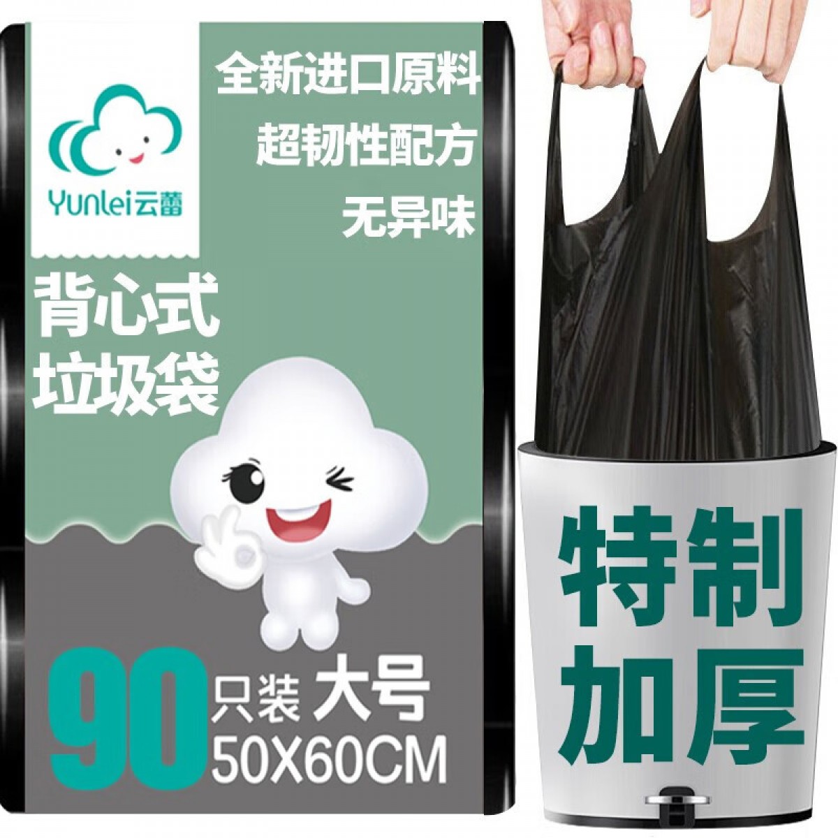 云蕾 垃圾袋加厚背心手提式90只 黑色中大号50*60cm家用塑料袋 21126 单位:包