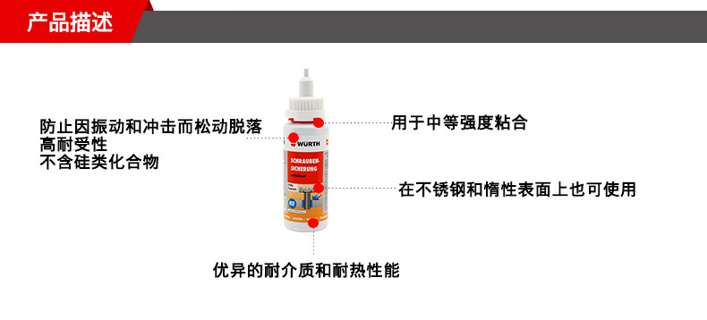 伍尔特(WURTH)0893243250 中强度螺丝固定胶-250G 螺丝固定液 螺丝紧固胶 螺丝紧固 紧固胶 螺纹紧固胶