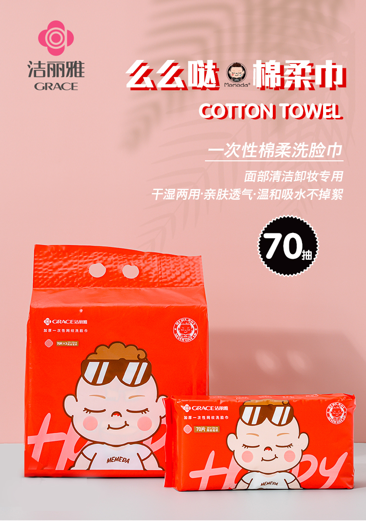 洁丽雅(grace)MRJ423 么么哒棉柔巾70抽/包 洗脸巾 5包起订