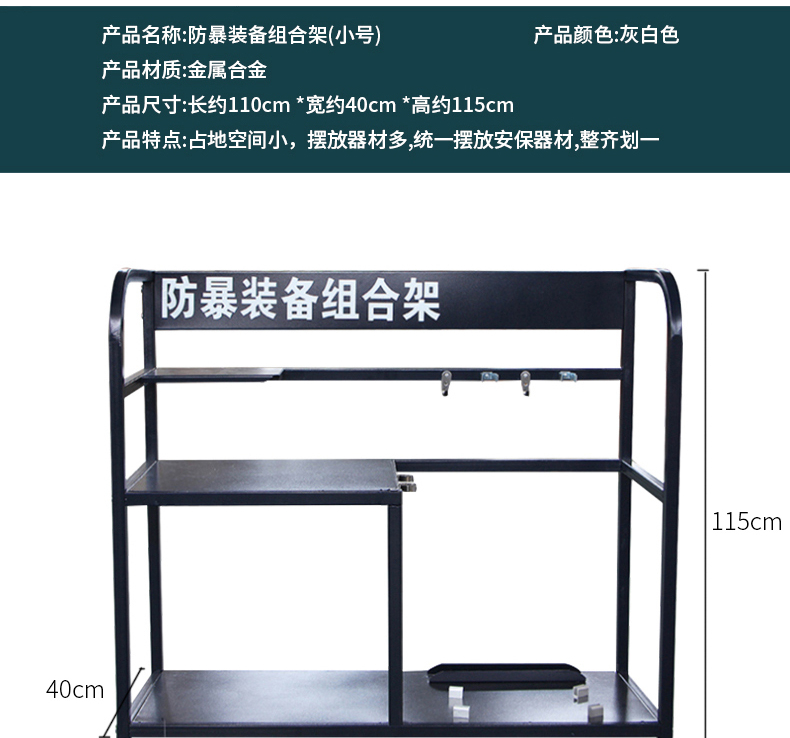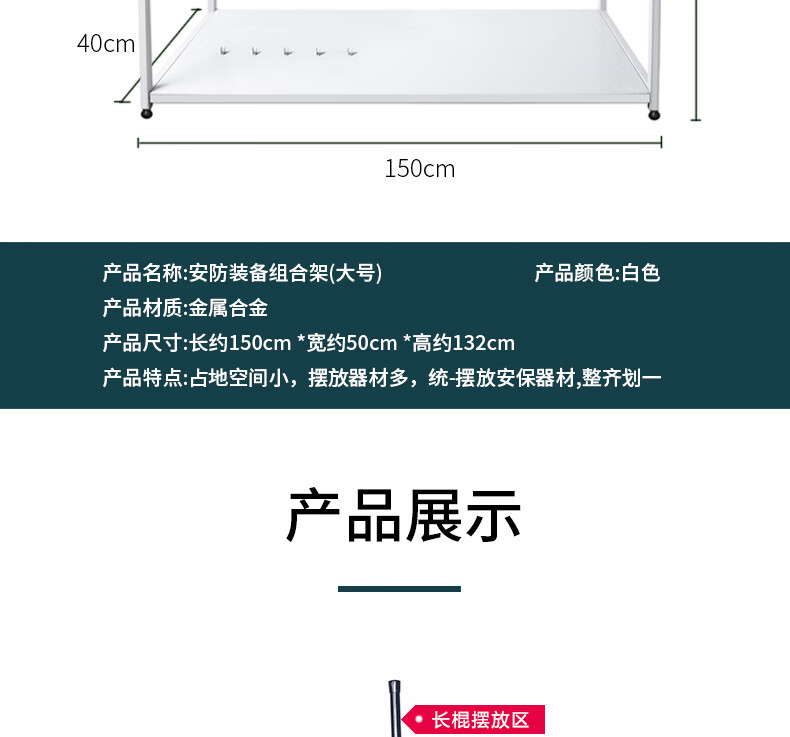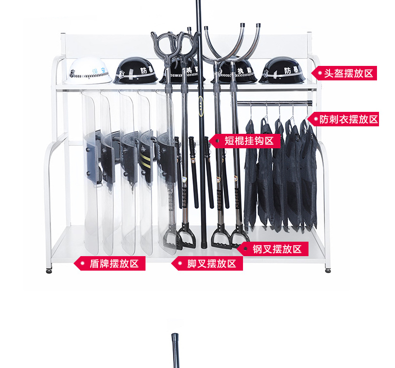 丛林狐防暴装备架盾牌支架防刺衣防暴头盔防刺服防刺背心钢叉脚叉抓捕器安保安防训练棍防暴棍 白色架