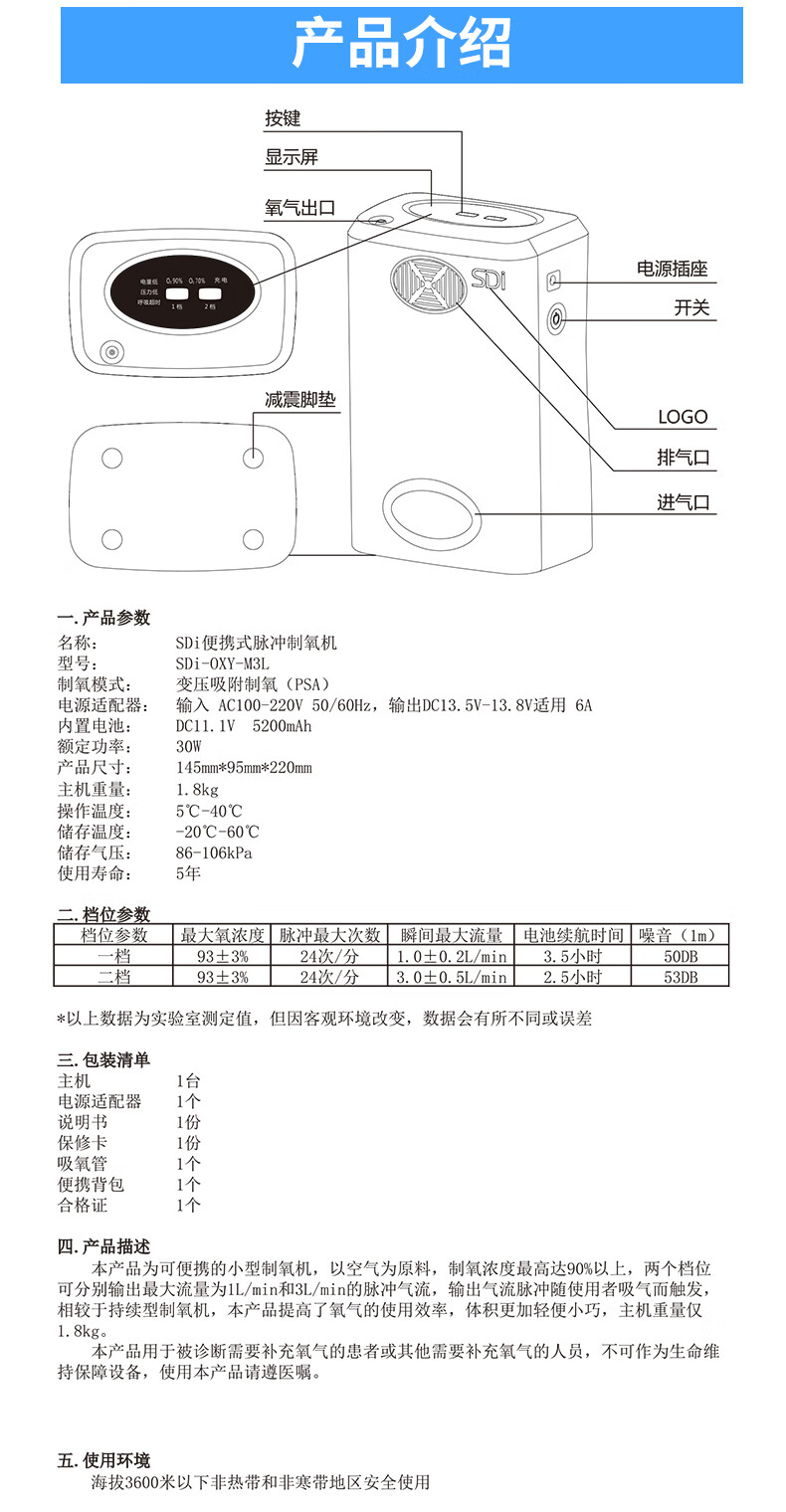 星工(XINGGONG)氧气机 家庭旅行高浓度吸氧机 可充电便携式脉冲制氧机3L 1.8KG
