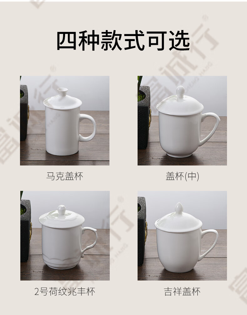 富诚行 办公杯 茶杯陶瓷杯 会议杯 陶瓷盖杯 商务会议办公茶杯 宾馆酒店单位公司开会茶杯 陶瓷茶杯 马克盖杯