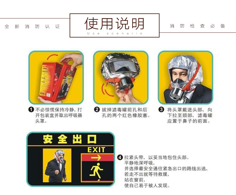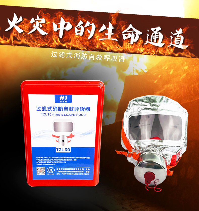 虎鲸安 过滤式自救呼吸器TZL30防毒面具消防面具防烟面罩 5盒起订