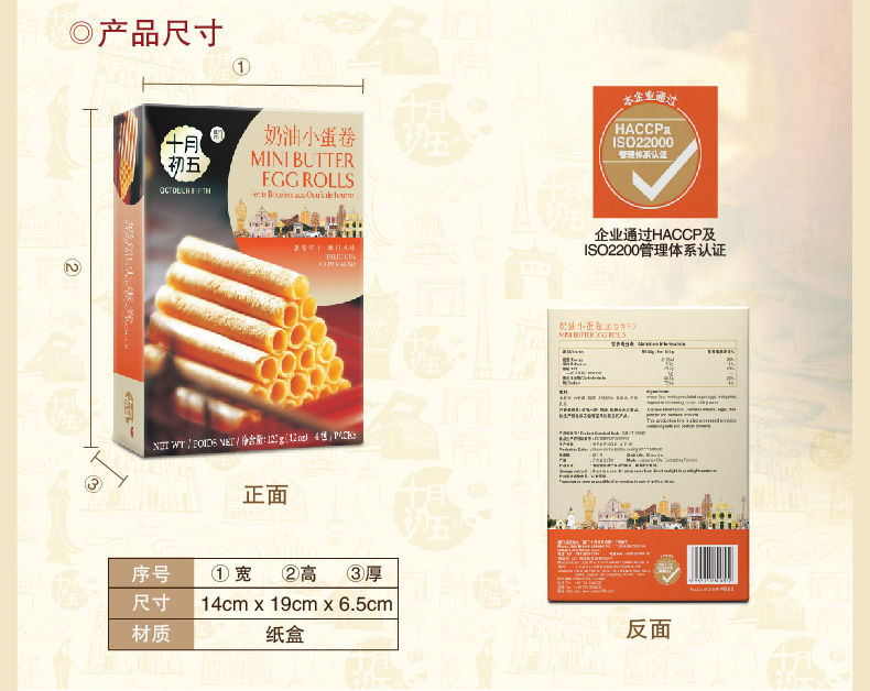 十月初五 【_奶油小蛋卷120g】 休闲零食 10盒起订