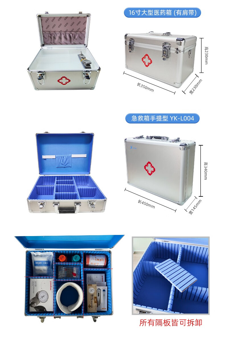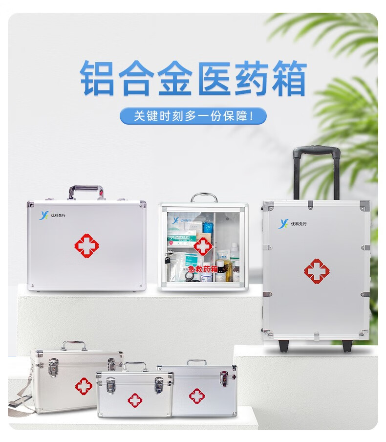 优科先行医药箱家用急救箱收纳小药箱 铝合金带锁大容量医疗箱应急套装 14寸中型医药箱(有肩带 空箱) 单位:个