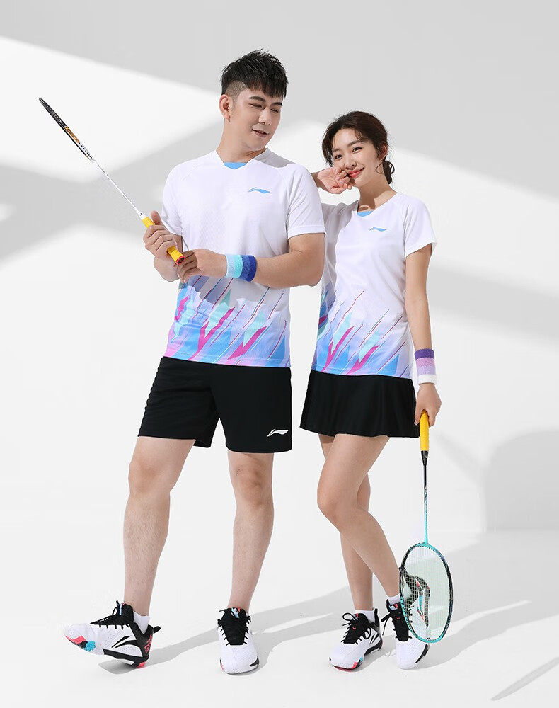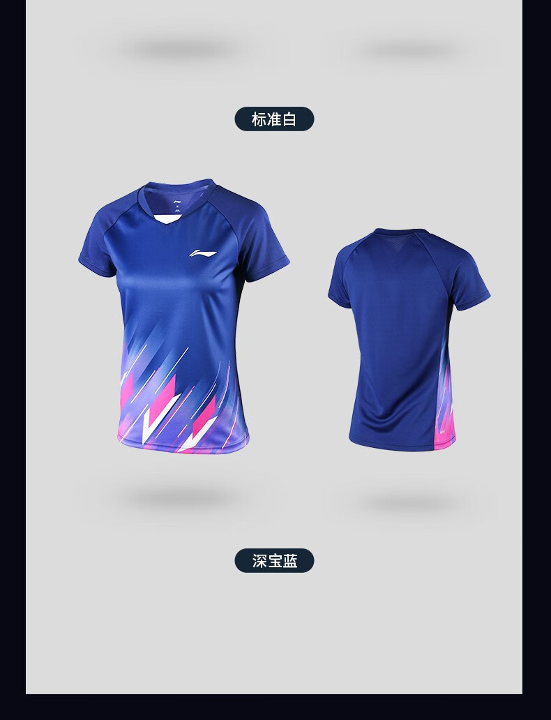 李宁2023羽毛球服套装女短袖运动服男款t恤夏季比赛速干训练队服 男子/深宝蓝上衣/黑色短裤(S-3XL可选 下单备注)单位:套