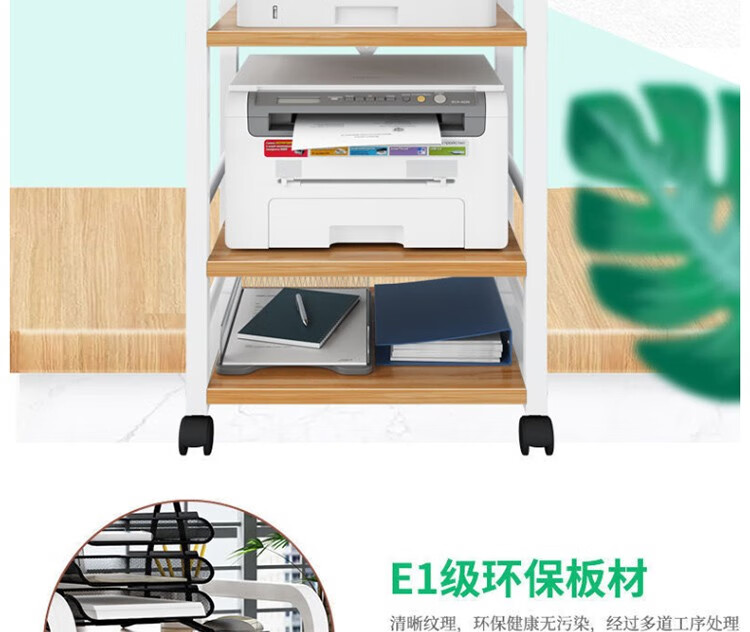 晟泰邦 打印机置物架落地可移动办公室收纳架打印复印一体架 二层层高可调 新款浅胡桃+白架 单位:个
