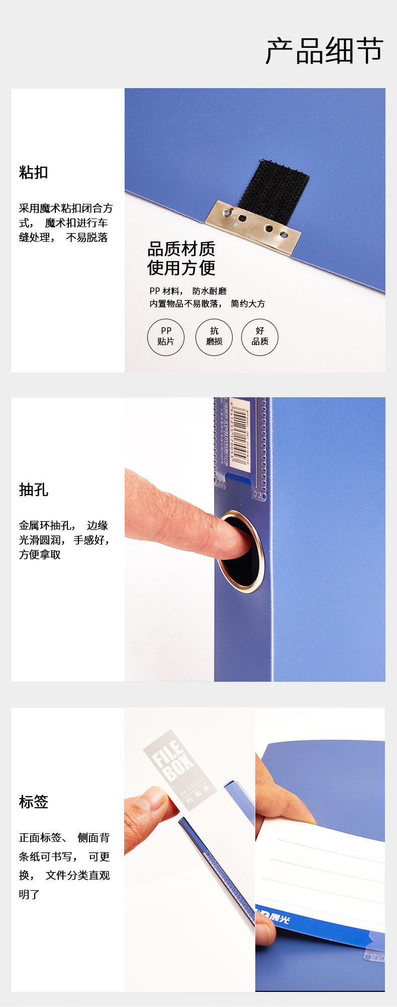 晨光(M&G)文具A4/55mm蓝色粘扣档案盒 办公文件盒 经济款党建资料盒/财务凭证收纳盒 6个装ADM929Z0 单位:组