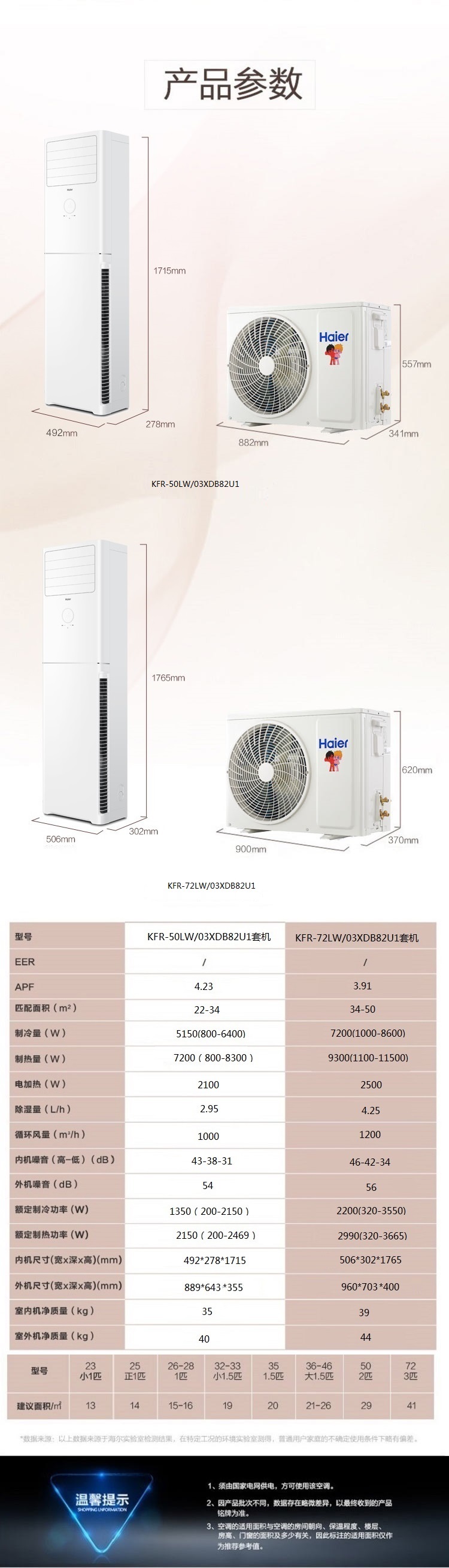海尔(Haier)KFR-72LW/03XDB82U1 立式空调 3匹自清洁二级能效防直吹PMV空调柜机 冰雪白 单位:台 标注安装
