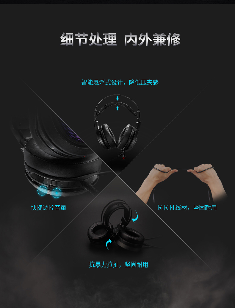 雷柏(Rapoo) 雷柏VH520游戏耳机头戴式RGB电脑虚拟7.1声道台式电竞耳麦降噪带麦克风吃鸡 VH520C黑色RGB版【电竞专用 超清晰7.1声 单位:个