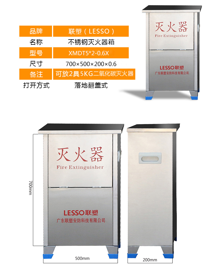 联塑(LESSO)XMDT5*2-0.6X 不锈钢灭火器箱700×500×200×0.6 可放2个5kg干粉灭火器(空箱) 单位:个