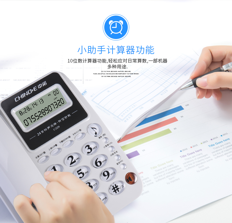 中诺电话机座机固定电话有线来电显示双接口免电池C228白色办公伴侣 单位:台