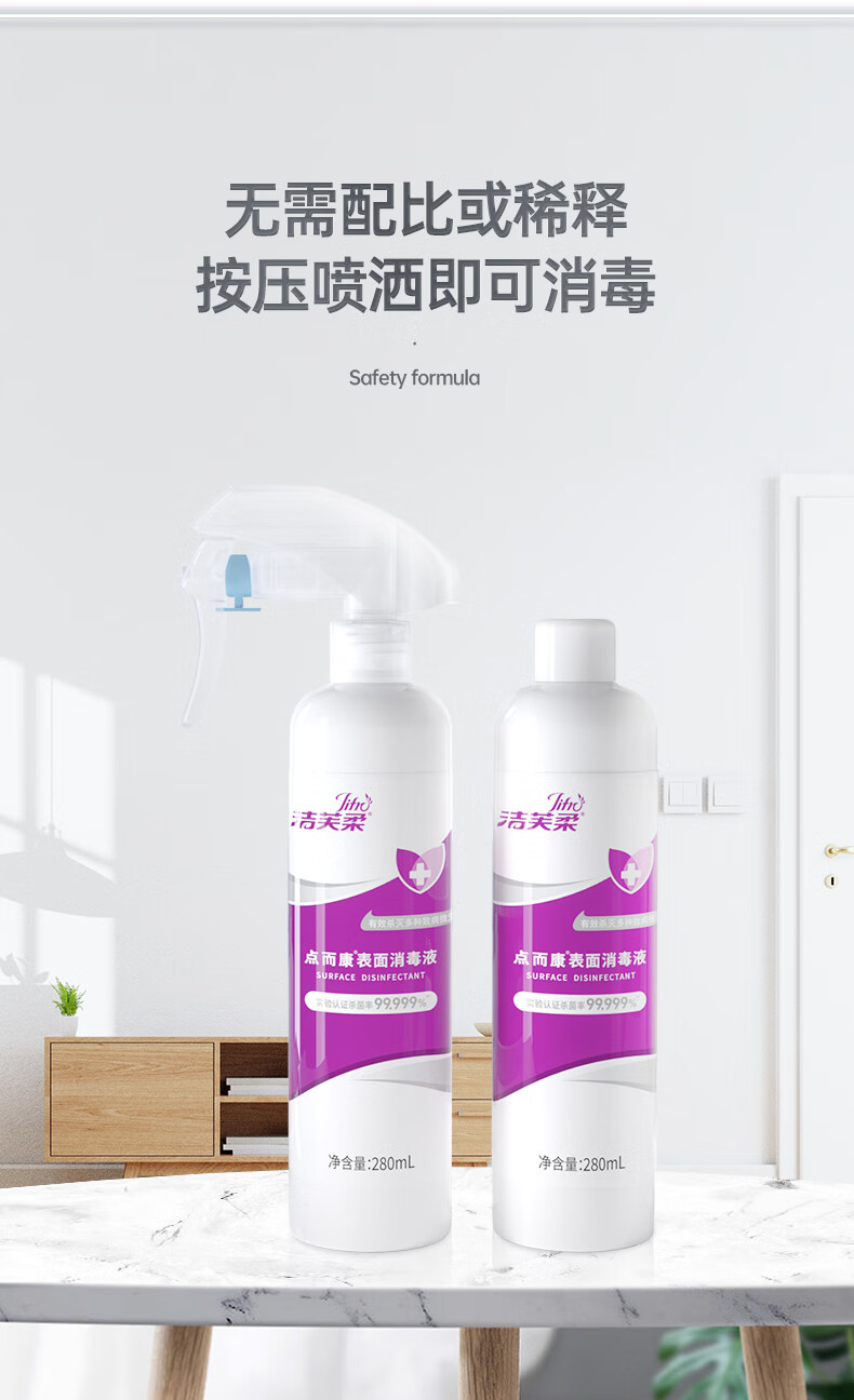 洁芙柔(JIFRO)喷雾消毒液280ml空气消毒喷雾杀菌家用玩具家具季铵盐消毒剂 单位:瓶 5瓶起订