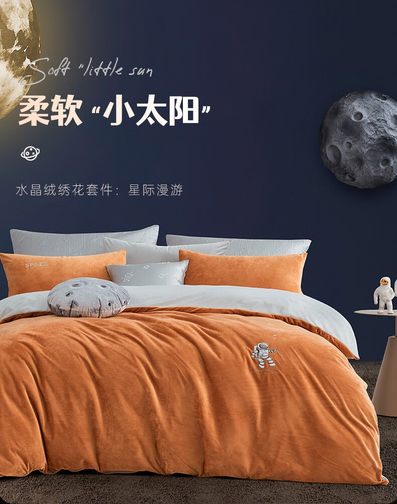 梦洁家纺 水晶绒被套单件冬季加绒加厚保暖牛奶绒珊瑚绒法兰绒被罩 【太空橙】水晶绒被套单件 200×230cm 单位:床