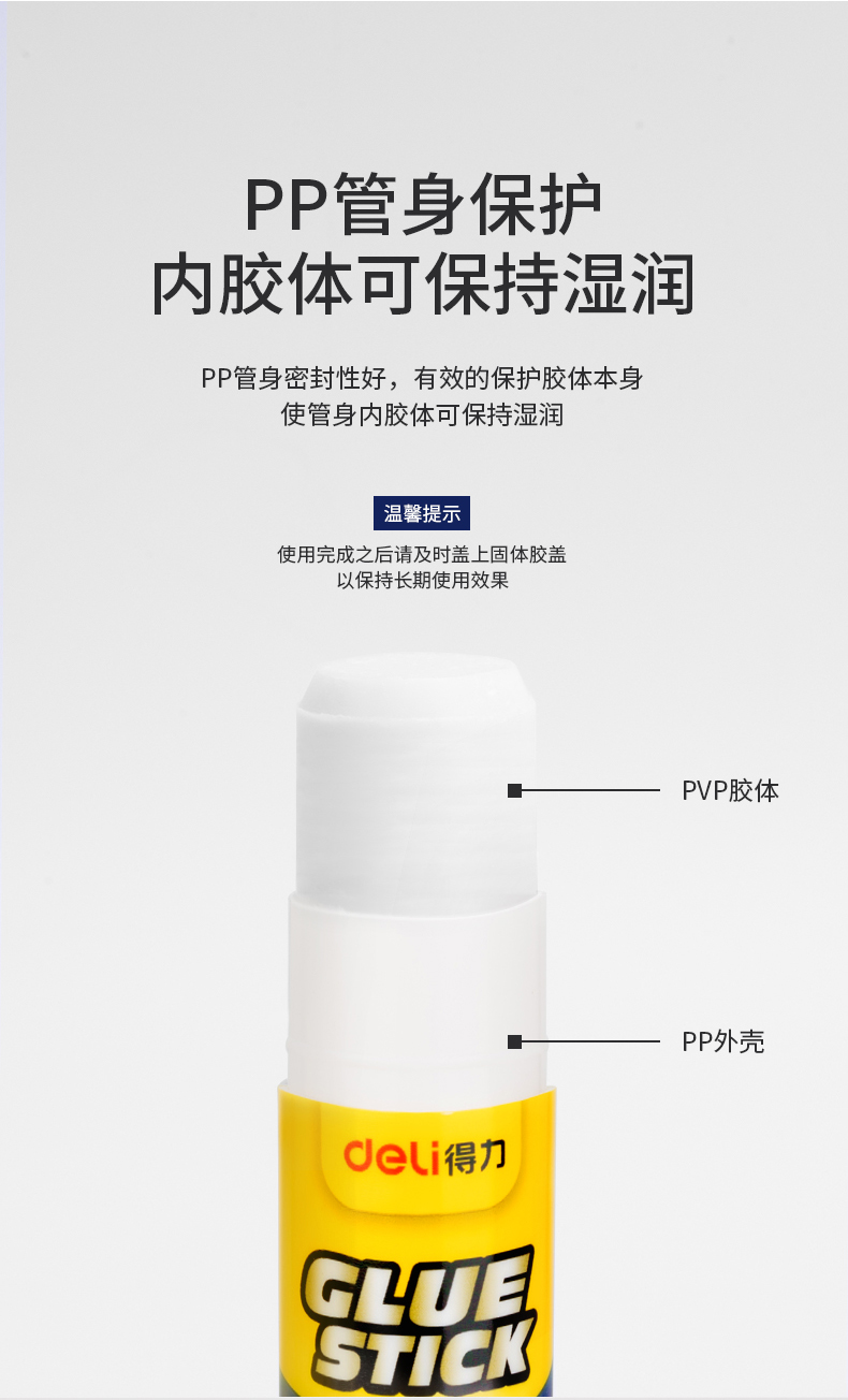 得力(deli)20g高粘度PVP固体胶水 无甲醛快干耐用胶棒 6支装 办公用品 6371