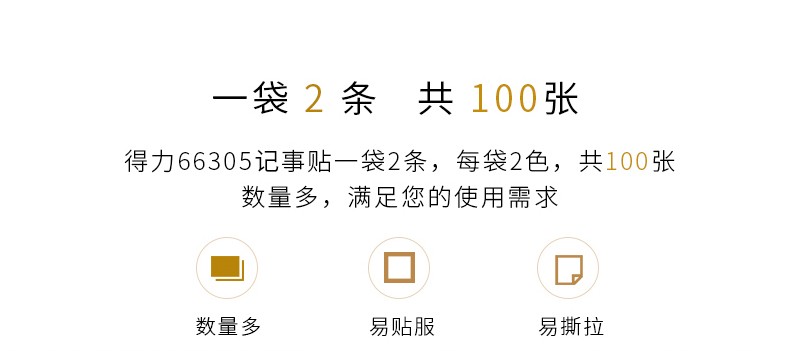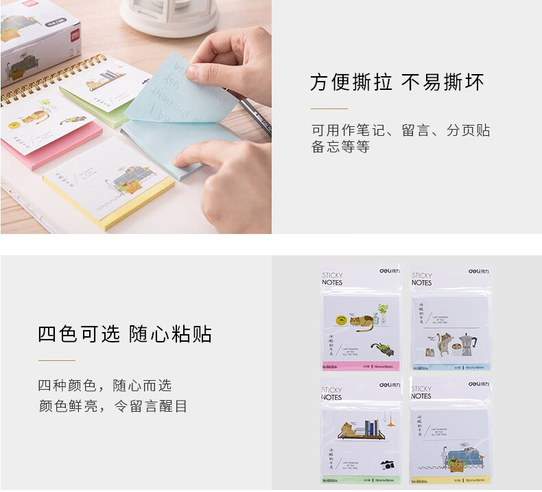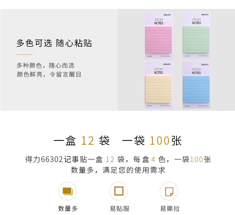 得力(deli) 便签9076便利贴 办公记事贴 N次贴 便利贴 76*76mm 单本 76*38mm双色(66305) 单位:包 50包起订