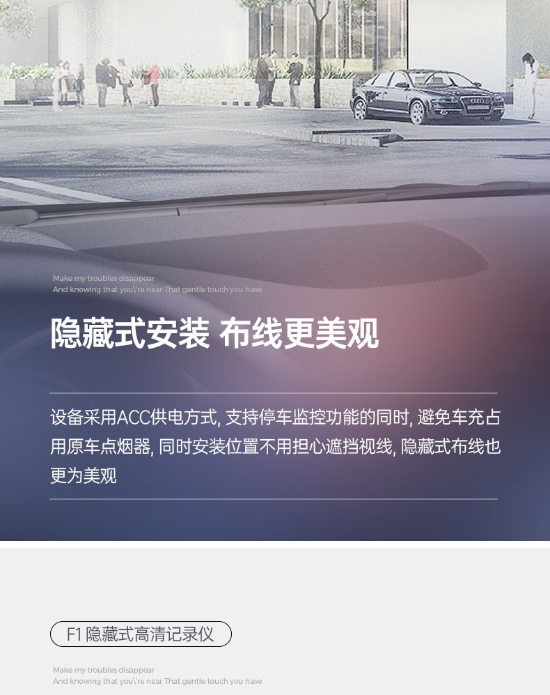 第一现场F1隐藏式高清行车记录仪1080P停车监控触摸操自动循环录影3.16英寸IPS屏幕 前后双录标准版+32